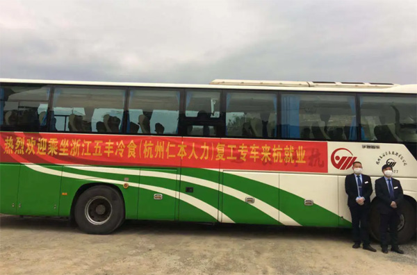 浙江五豐(杭州仁本)聯(lián)合復(fù)工專車接員工返杭復(fù)工