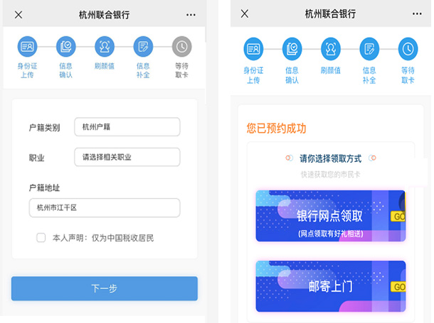 2、填寫個(gè)人信息時(shí),選擇自己就近的杭州聯(lián)合銀行,方便領(lǐng)卡和激活