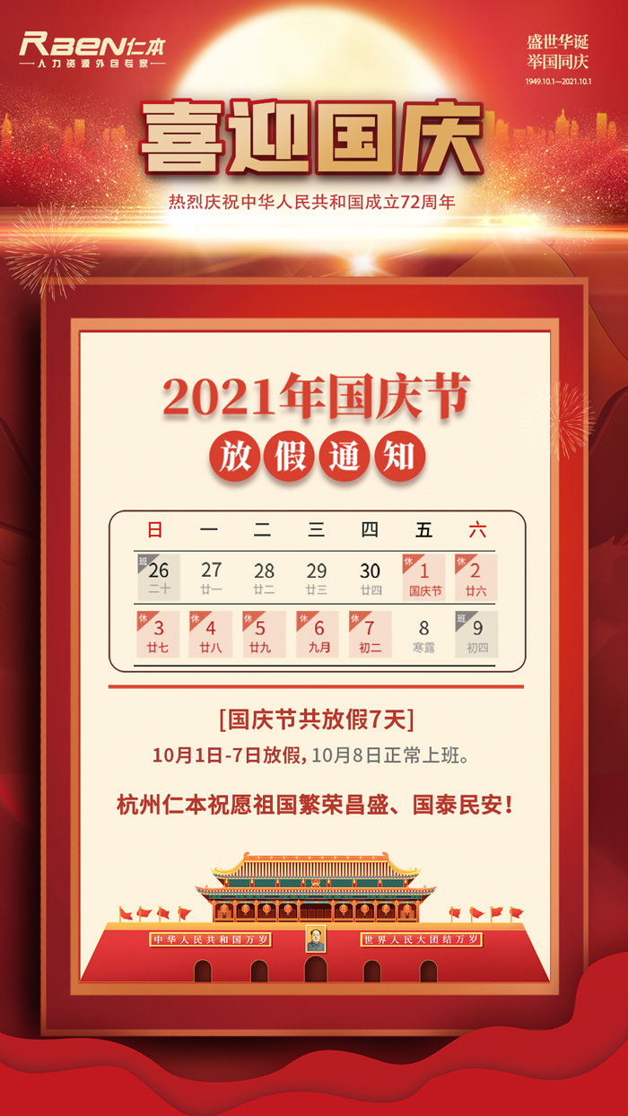 杭州仁本祝愿祖國繁榮昌盛、國泰民安!
