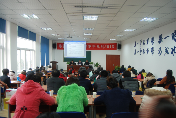 1月17日,杭州仁本2013年終總結表彰會議在培訓室召開,杭州仁本全體員工、各分公司領導、廣業職高負責人以及駐浙江企事業單位客服專員參加了此次會議。(圖為會議現場)