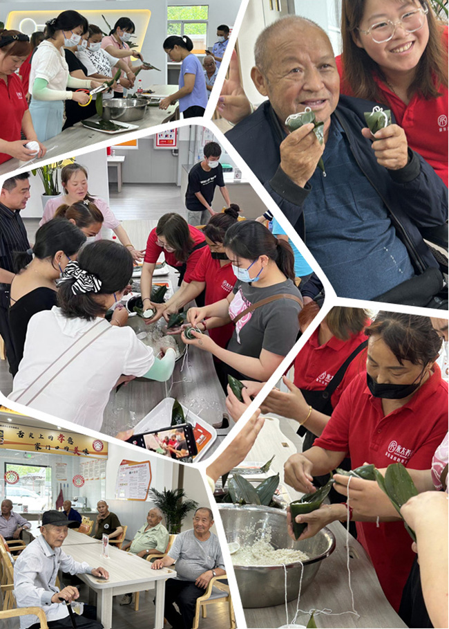 在活動現(xiàn)場,小伙伴們還陪著養(yǎng)老中心的老人們一起包粽子,過端午,話家常,詳細(xì)詢問老人的生活身體狀況,并將提前準(zhǔn)備好的節(jié)日禮盒親手送到每一位老人的手中,整個現(xiàn)場歡聲笑語,其樂融融。