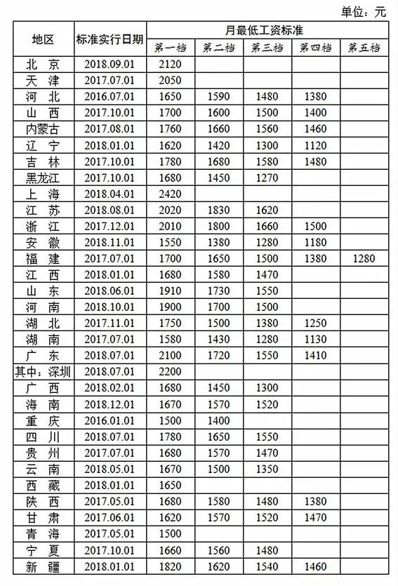 1月10日,人社部網(wǎng)站公布全國各地區(qū)月最低工資標準情況(截至2018年12月)和全國各地區(qū)小時最低工資標準情況(截至2018年12月)。快來看看你家鄉(xiāng)的最低工資標準是多少!