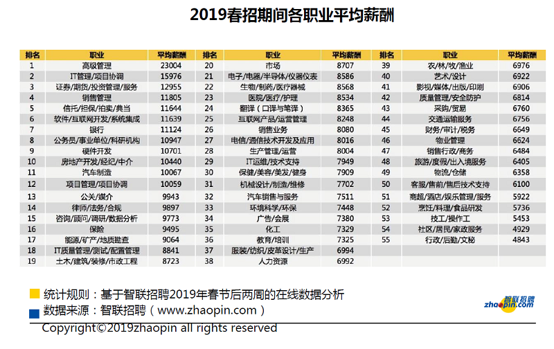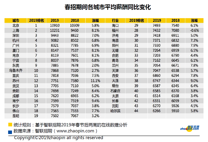 | 智聯(lián)招聘發(fā)布《2019春季人才流動(dòng)報(bào)告》春招平均薪酬為8,165元 |