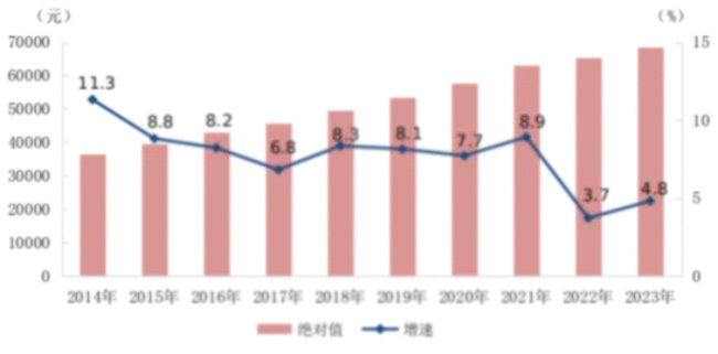 2023年,全國(guó)城鎮(zhèn)非私營(yíng)單位就業(yè)人員年平均工資為120698元,比上年增加6669元,名義增長(zhǎng)5.8%,扣除價(jià)格因素實(shí)際增長(zhǎng)5.5%。