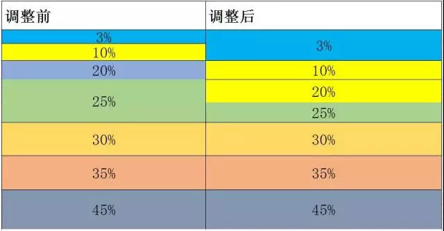 04 稅率和級(jí)距調(diào)整后都有那些變化? 級(jí)距上的調(diào)整: