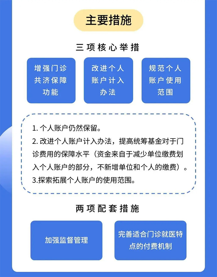 變化一:單位繳費擬不再進入個人賬戶 這個變化最直接的影響就是:個人賬戶的錢變少了。 大家都知道,職工醫保賬戶分為統籌賬戶和個人賬戶兩部分。 平時,我們每個月繳納的醫保費用由企業和我們自己共同承擔,單位繳費金額為社保基數的9%(基本醫療保險)+1%(大額補貼),個人繳費金額則為社保基數的2%(基本醫保)+3元(大額補助)。其中,自己繳納的基本醫療部分,也就是社保基數的2%加上單位繳納醫保的一部分,根據年齡按照不同比例,計入個人賬戶。 看到這,相信很多朋友都會納悶,個人賬戶的錢變少了,那我們門診看病拿藥該咋辦呢?國家的考慮是不是有點不太周到呢? 其實并不是這樣,因為少的那部分錢,實際上是被國家用來提升我們的醫保待遇了,而這也是我們即將要說的第二個變化。