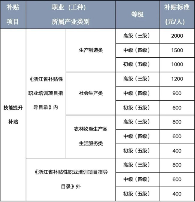 就業(yè)/技能補貼 1、高校畢業(yè)生就業(yè)補貼 補貼對象:畢業(yè)兩年內(nèi)的高校畢業(yè)生(不含本企業(yè)法定代表人、負責人)被注冊地址在杭州市的1000人以下企業(yè)新招用,在同一單位依法連續(xù)繳納社會保險費滿12個月且工資收入(以個人社保繳費基數(shù)為準)低于上年度杭州市全社會在崗職工平均工資(以同期社保繳費基數(shù)的100%為準) 注:高校畢業(yè)生是指全日制普通高等學校專科以上畢業(yè)生 補貼標準:每連續(xù)繳納社會保險費12個月給予2000元的補貼,超過部分不足12個月的不予補貼 補貼期限:自符合補貼條件月份起,累計不超過3年。企業(yè)為補貼對象首次繳納社會保險費時間早于其畢業(yè)時間的,不予享受該補貼 2、一次性求職補貼(2024) 申請時間:2024年8月15日至9月15日 補貼標準:每人3000元,審核通過后于10月31日前統(tǒng)一發(fā)放 申請對象: 在畢業(yè)學年內(nèi)(包括2024年和2025年畢業(yè))的浙江省內(nèi)全日制普通高等學校、中等職業(yè)學校(含技工院校)非定向培養(yǎng)畢業(yè)生(不限戶籍),符合下列條件之一: 來自城鄉(xiāng)居民最低生活保障家庭 孤兒 持證殘疾人 在學期間已獲得校園地或生源地國家助學貸款 來自貧困殘疾人家庭(城鄉(xiāng)低保邊緣家庭且畢業(yè)生父母其中一方為持證殘疾人) 來自防止返貧監(jiān)測對象家庭 來自零就業(yè)家庭 *畢業(yè)生曾經(jīng)享受過一次性求職補貼(原求職創(chuàng)業(yè)補貼)的,不得再次申請。在浙江省外學校就讀的學生,請咨詢學校所在地人力社保部門 3、技能提升補貼(2024) 申領(lǐng)對象: a、取得職業(yè)資格證書或職業(yè)技能等級證書的企業(yè)在職職工 b、在領(lǐng)取失業(yè)保險金期間取得職業(yè)資格證書或職業(yè)技能等級證書的參保失業(yè)人員 申領(lǐng)條件:依法參加失業(yè)保險,累計繳納失業(yè)保險費12個月(含)以上,取得初級(五級)、中級(四級)、高級(三級)職業(yè)資格證書或職業(yè)技能等級證書(以下簡稱“證書”) 補貼標準: